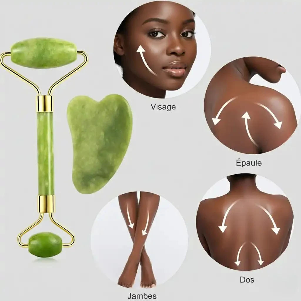 Offrez à votre peau le rituel beauté ancestral de la médecine chinoise avec l’ensemble Rouleau de Jade et Gua Sha. Fabriqué en véritable jade vert naturel, cet accessoire de soin est reconnu depuis des siècles pour ses vertus apaisantes et rajeunissantes.